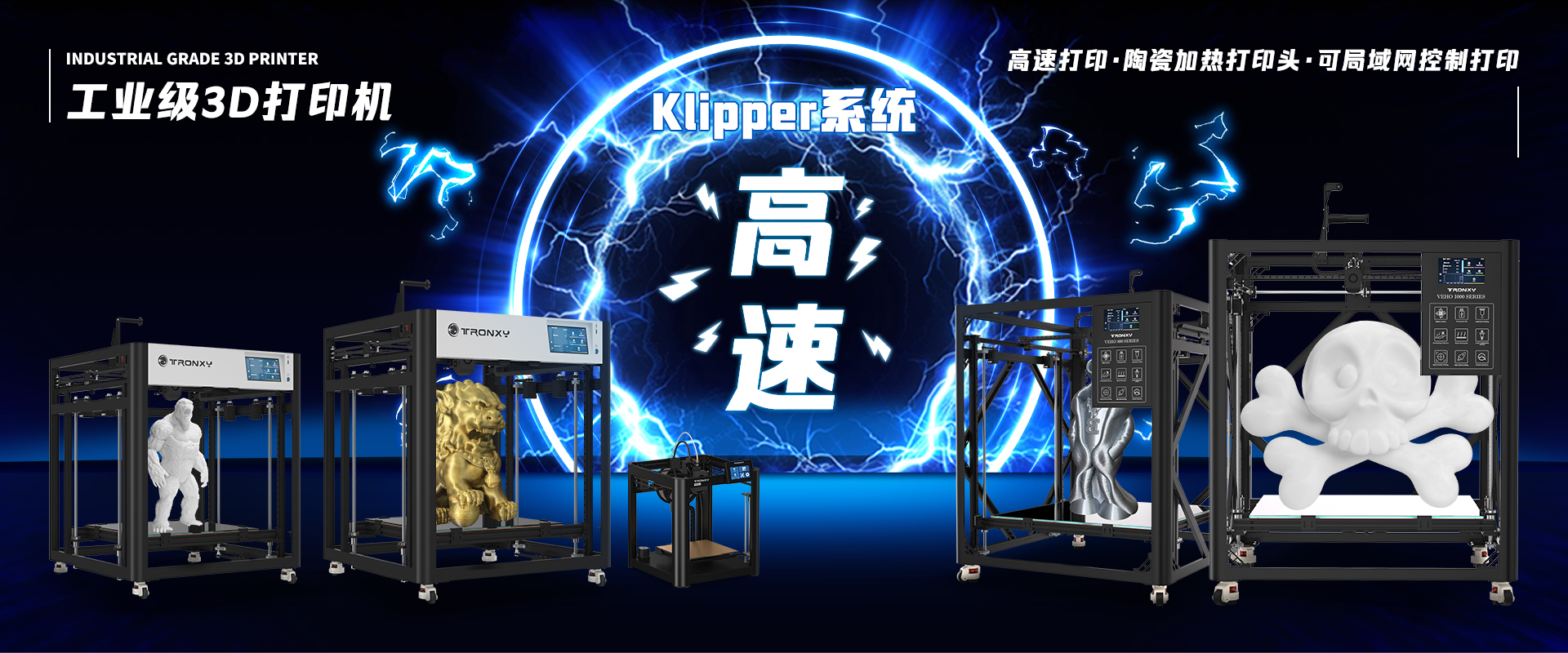 自主設計,定制生產線,可生產從桌面級到工業級等 尺寸從180mm到1.6米的3D打印機